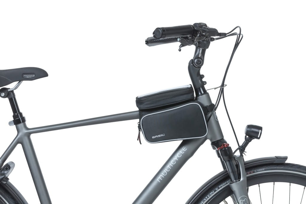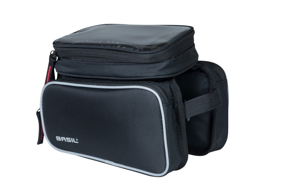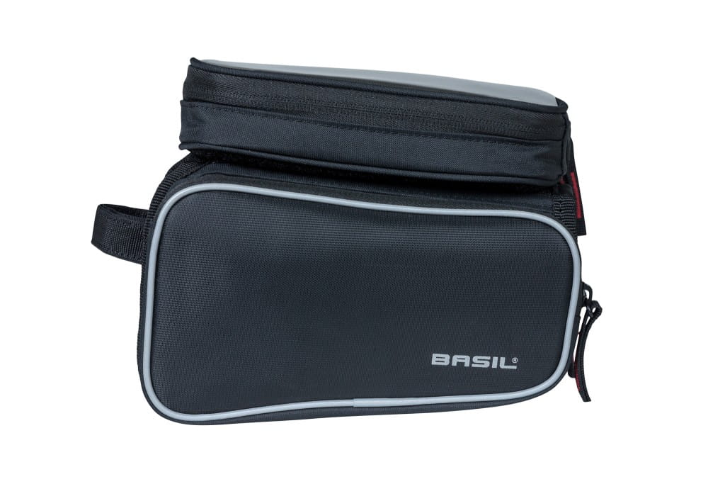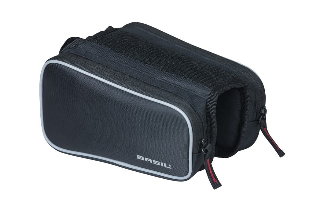 Torba na ramę Basil Sport Design TOP TUBE FRAME BAG jest idealna do rekreacyjnej jazdy na rowerze. Sportowa czarna torba ma kilka przydatnych funkcji. Dzięki pojemności 1,5 litra możesz zabrać ze sobą małe akcesoria, takie jak telefon komórkowy, klucze lub zestaw do naprawy opon czy przekąski. Torbę można łatwo przymocować do górnej rury roweru za pomocą rzepowych pasków. Torba ma sportowy krój i jest wykonana z wodoodpornego poliestru. Każda z dwóch bocznych przegród ma własną komorę wewnętrzną. Dodatkowo, górną część można łatwo odczepić od reszty co sprawia, że Twój telefon jest w każdej chwili łatwy do użycia. Dodatkowo część na telefon wyposażona jest w dotykowe okienko i otwór do podłączenia słuchawek. Odblaskowe elementy na torbie sprawiają, że jesteś lepiej widoczny w ciemności, dzięki czemu lepiej wyróżniasz się w ruchu ulicznym.