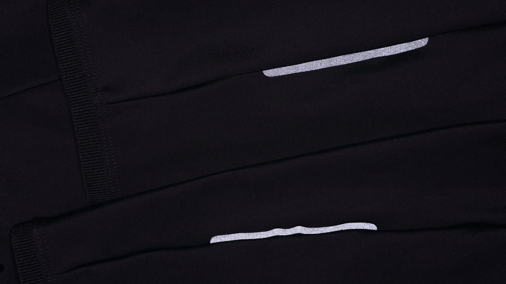 Odblaskowe elementy na łydkach i konstrukcja ściągaczy przy kostkach pasują do kurtki zimowej Rapha Core