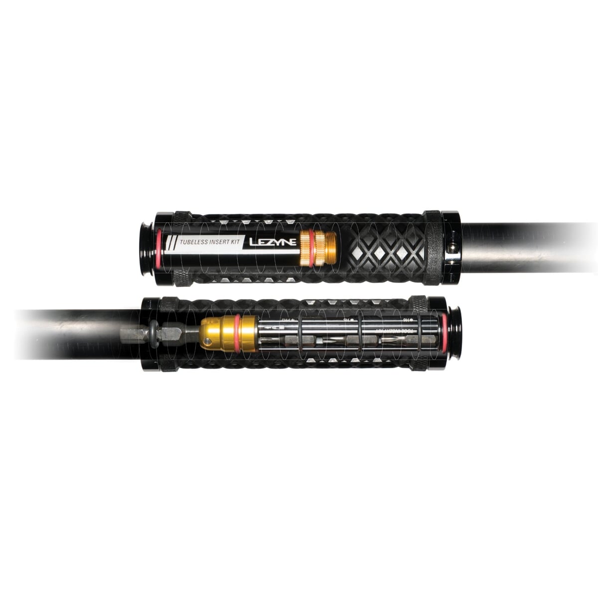 Zestaw Dual Insert Kit to najlepszy zestaw narzędzi do rowerów górskich z dyskretnym montażem, zawierający dwa nasze innowacyjne narzędzia, które dyskretnie i bezpiecznie chowają się w końcach kierownicy: zestaw wkładek Tubeless Insert Kit i zestaw wkładek Tool Insert Kit.