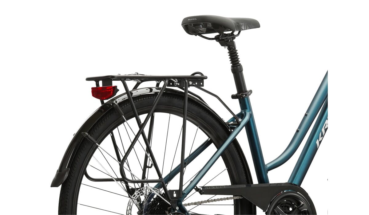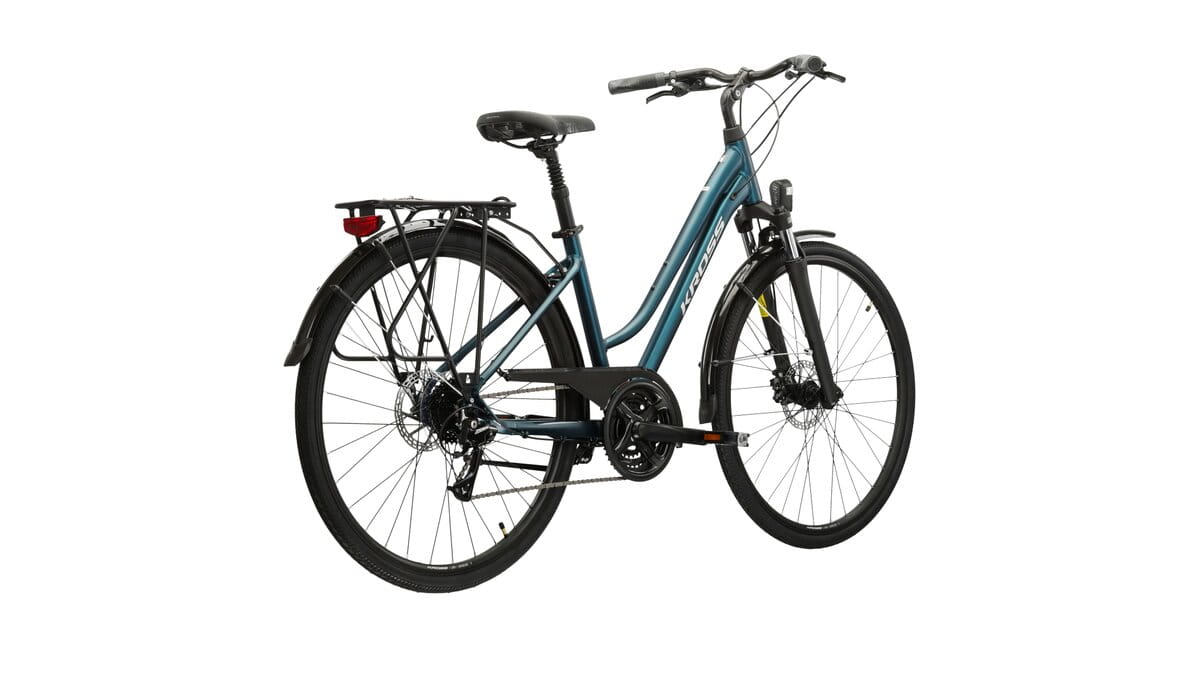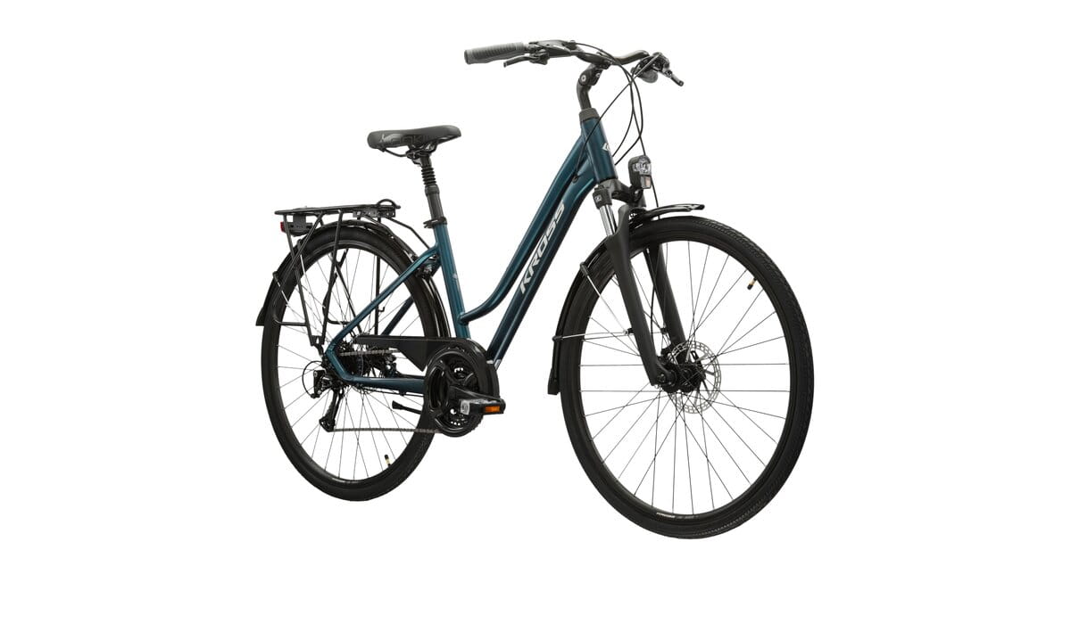 Jeśli lubisz jeździć na rowerze i szukasz komfortowej maszyny na dojazdy do pracy to KROSS Trans 4.0 jest rowerem idealnym dla Ciebie. Sprawdzi się także w trakcie weekendowych wycieczek czy na długich wyprawach. Rama z obniżonym przekrokiem i stworzona specjalnie na potrzeby tego roweru geometria zapewnia niesamowity komfort jazdy. Dzięki specjalnie wzmocnionemu bagażnikowi na KROSS Trans 4.0 przewieziesz nawet ciężki bagaż. Nie straszna ci będzie również pogoda, bo nasz system pełnych błotników ochroni twoją odzież przed błotem tryskającym spod opon.