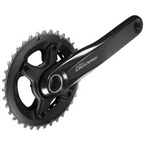 Mechanizm korbowy SHIMANO DEORE FC-M6000-2 jest idealny do rowerów górskich z 2x10-rzędowymi układami napędowymi. Ma ramiona HOLLOWTECH II, czteroramienną konstrukcję oraz tarczę z materiałów kompozytowych. Dostępne przełożenia obejmują konfiguracje 34-27, 36-26 i 38-28T.